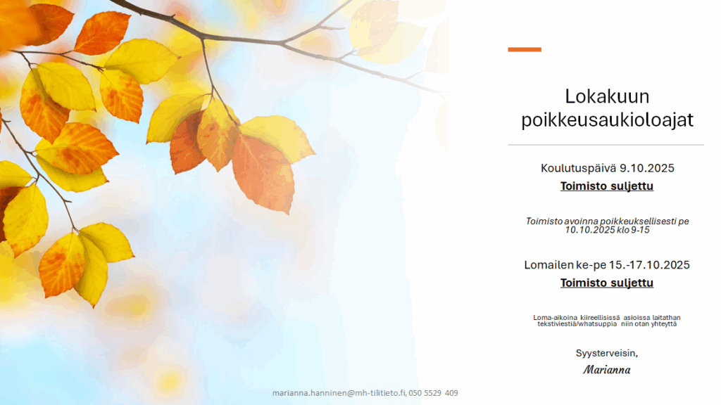 Lokakuun poikkeusaukioloajat!
